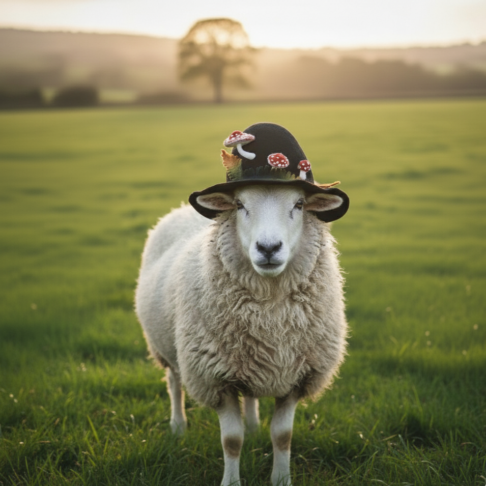 Each hat begins as raw wool, carefully hand-poked and shaped over many hours using traditional felting techniques. Every detail — from the sculpted crown to each tiny leaf or mushroom — is formed entirely by hand, without molds or machines. This slow, intentional process gives every piece its unique character and soul.